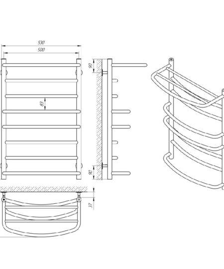 Водяна рушникосушка Laris Євромікс П8 500 х 800 з полицею