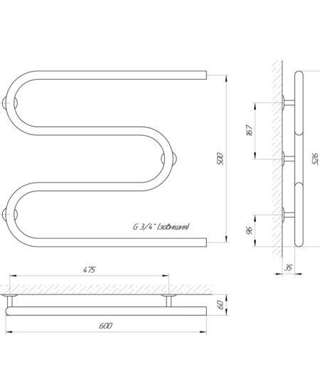 Водяна рушникосушка Laris Змійовик 25РС3 600 х 500 3/4″