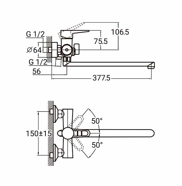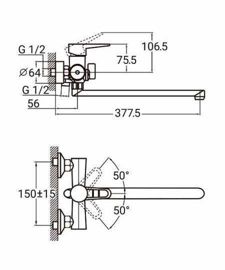 | Вилив | Прямий 350 мм, поворотний 360° |