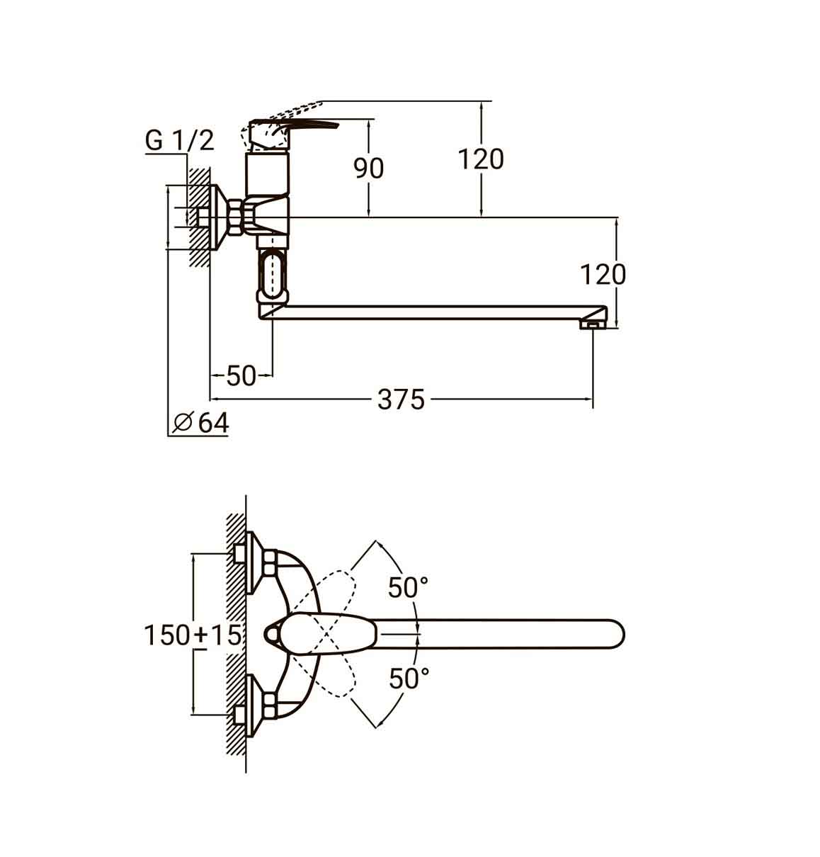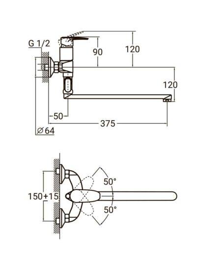 | Вилив | Прямий 350 мм, поворотний 360° |